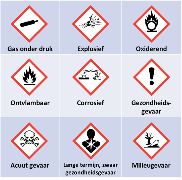 Voor de aanduiding van deze verschillende gevarenklassen zijn 9 pictogrammen beschikbaar... Overzicht officiële veiligheidspictogrammen + betekenis. Twee signaalwoorden duiden "gevaar" voor de gevaarlijkste producten en "waarschuwing" voor de minder gevaarlijke producten aan. Pictogrammen spelen een belangrijke rol bij de veiligheid op de werkvloer.. Daarom is het belangrijk dat u de informatie op de etiketten op de verpakking van huishoudchemicaliën goed leest, dat u weet wat de gevaarsymbolen betekenen en dat u …